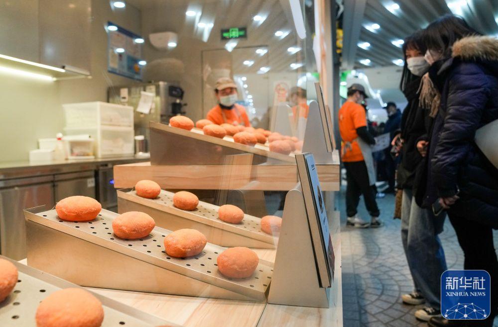 1月24日,在上海徐家汇商圈的一家商店内,店员在为顾客准备美食。新华社记者 丁汀 摄