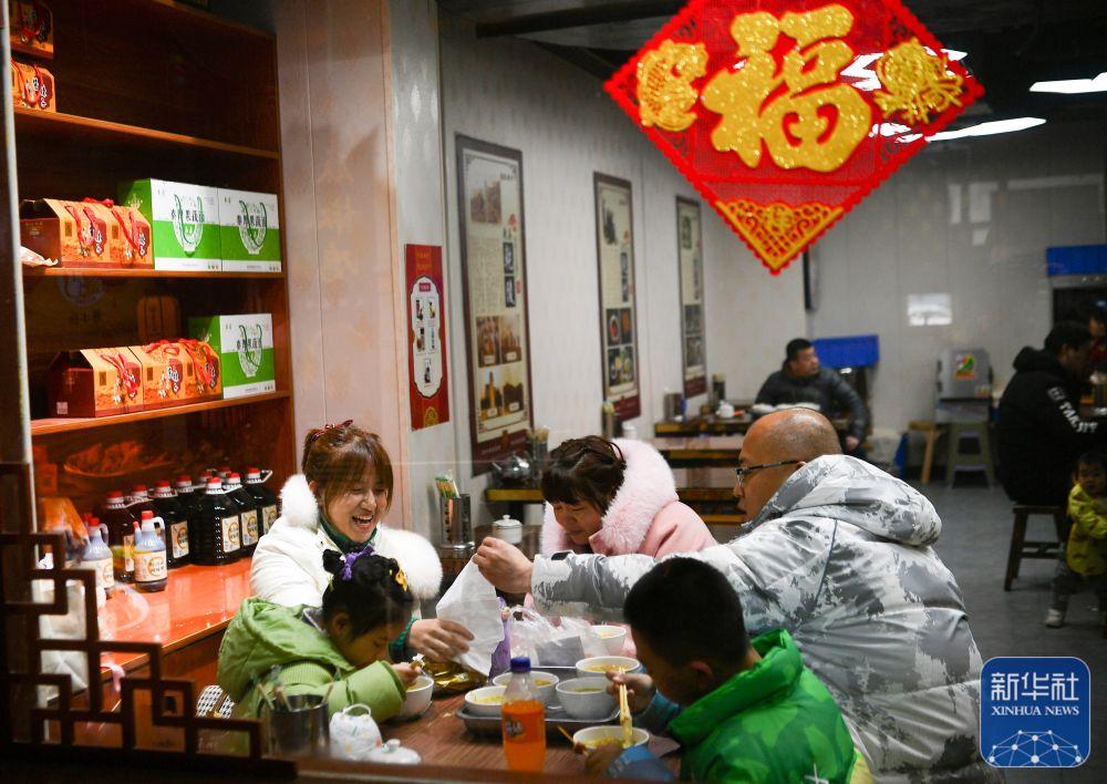 1月24日,市民在贵州省安顺市西秀区一家餐厅享用美食。新华社发(陈熙摄)